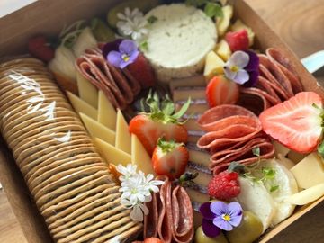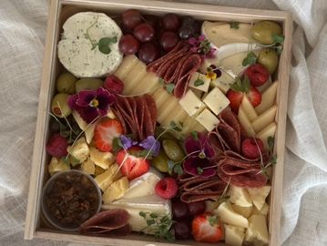 Our grazing boxes are the perfect portable indulgence, thoughtfully curated for any occasion, including corporate events. Each box features a delightful assortment of artisan cheeses, cured meats, fresh fruits, nuts, and sweet treats, all beautifully arranged for effortless enjoyment. Crackers are included on the side to keep every bite fresh and flavorful. Ideal for picnics, gifts, intimate gatherings, or professional settings, our grazing boxes bring a touch of elegance and convenience to any
